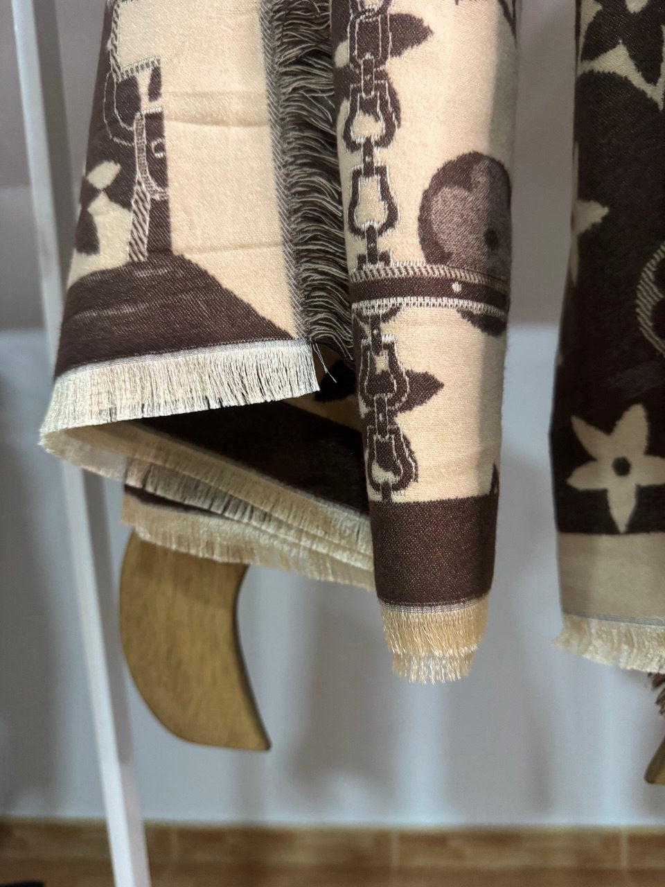 Esta bufanda doble cara en tonos marrón y beige combina elegancia y calidez para tus looks de invierno. Su diseño inspirado en el estilo luxury con estampado de flores y cadenas añade un toque sofisticado a cualquier outfit. Confeccionada en tejido suave y cálido, es perfecta para protegerte del frío con estilo. Ideal para combinar con abrigos, chaquetas o looks casual chic.