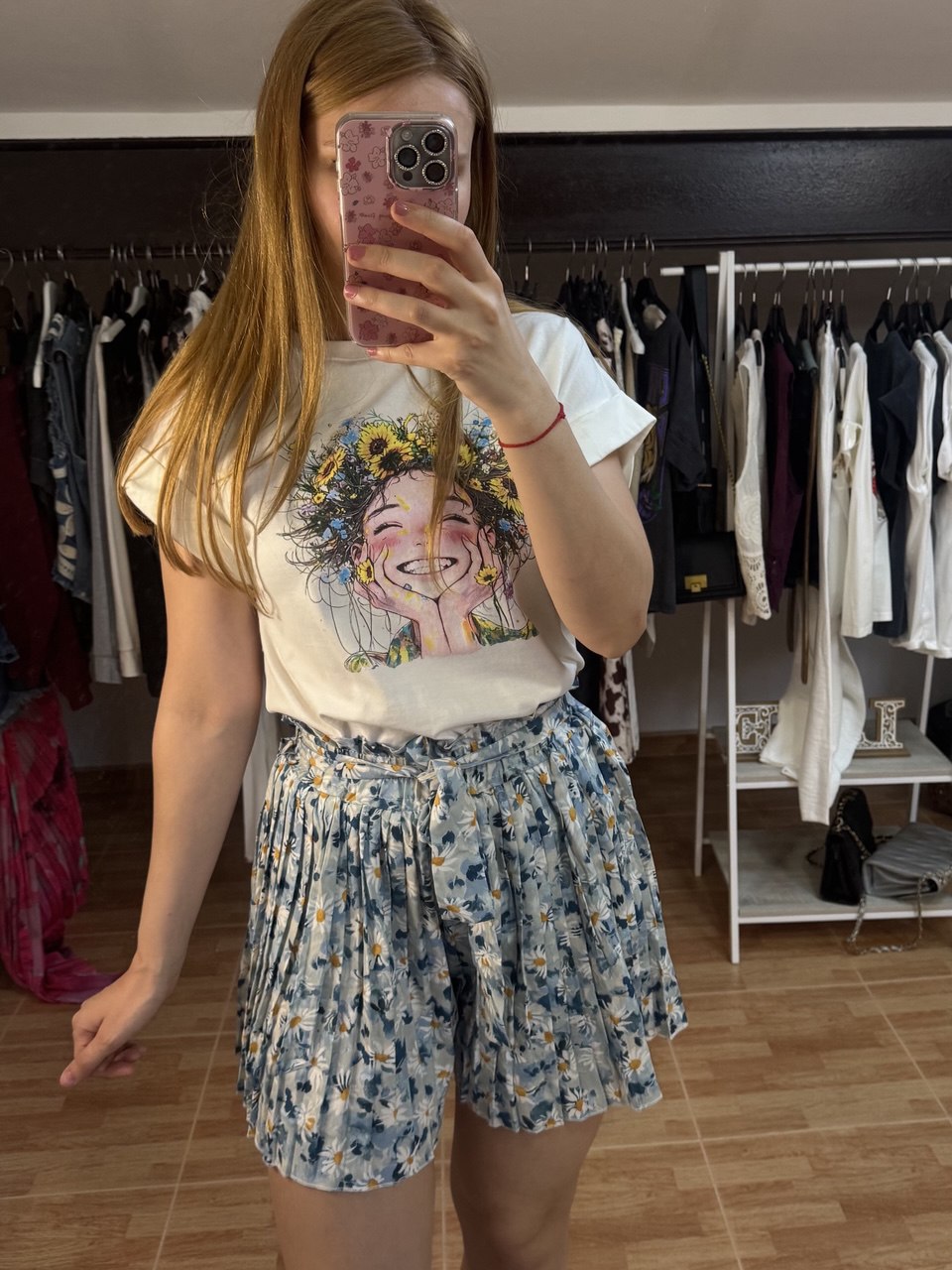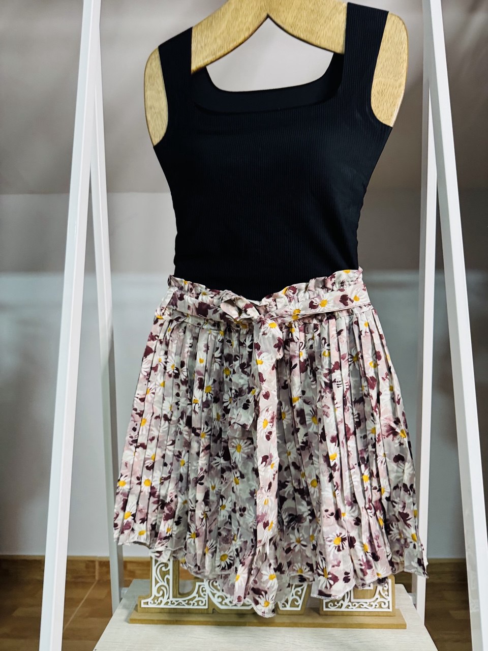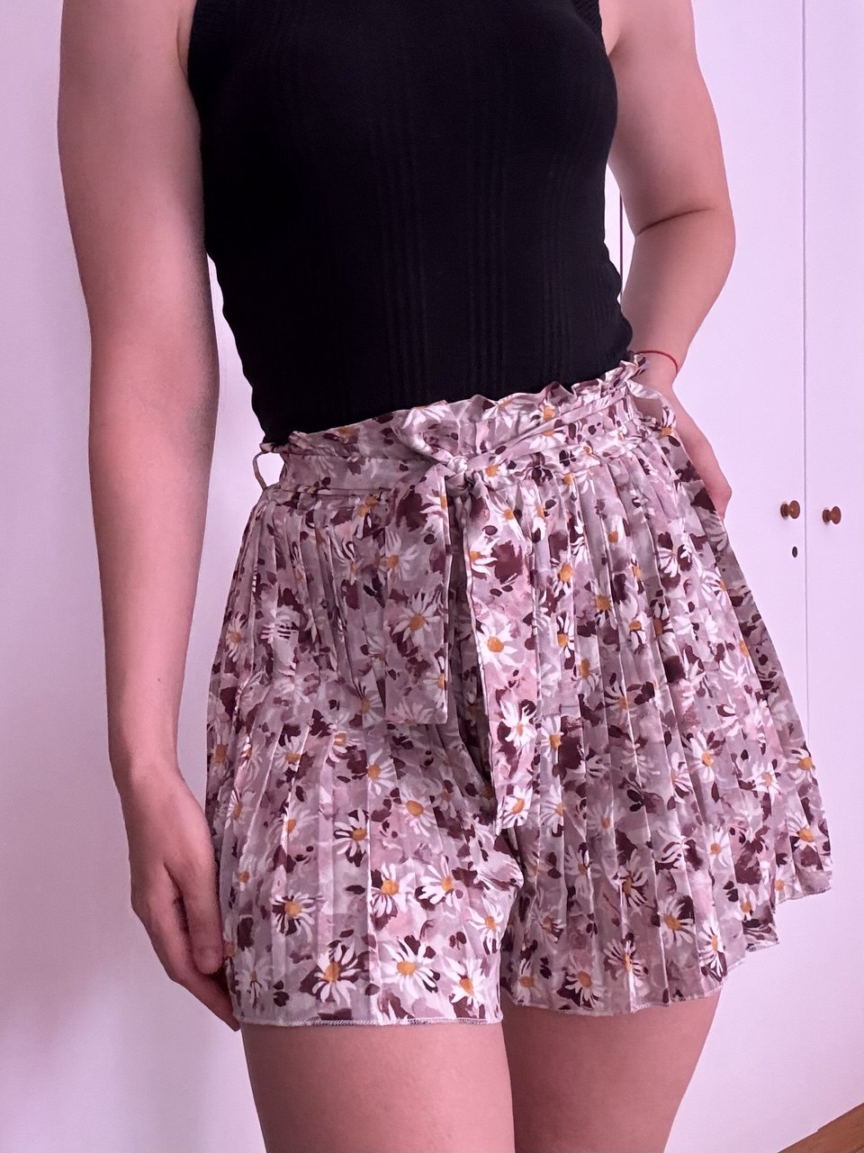 Falda pantalón plisada con estampado floral, cinturón ajustable y tejido ligero. Una prenda versátil, ideal para looks casuales o arreglados en verano.