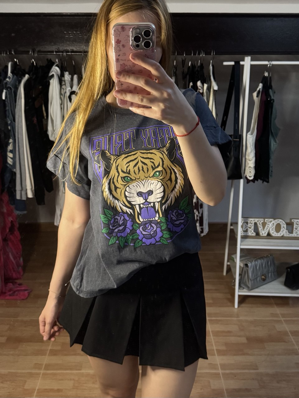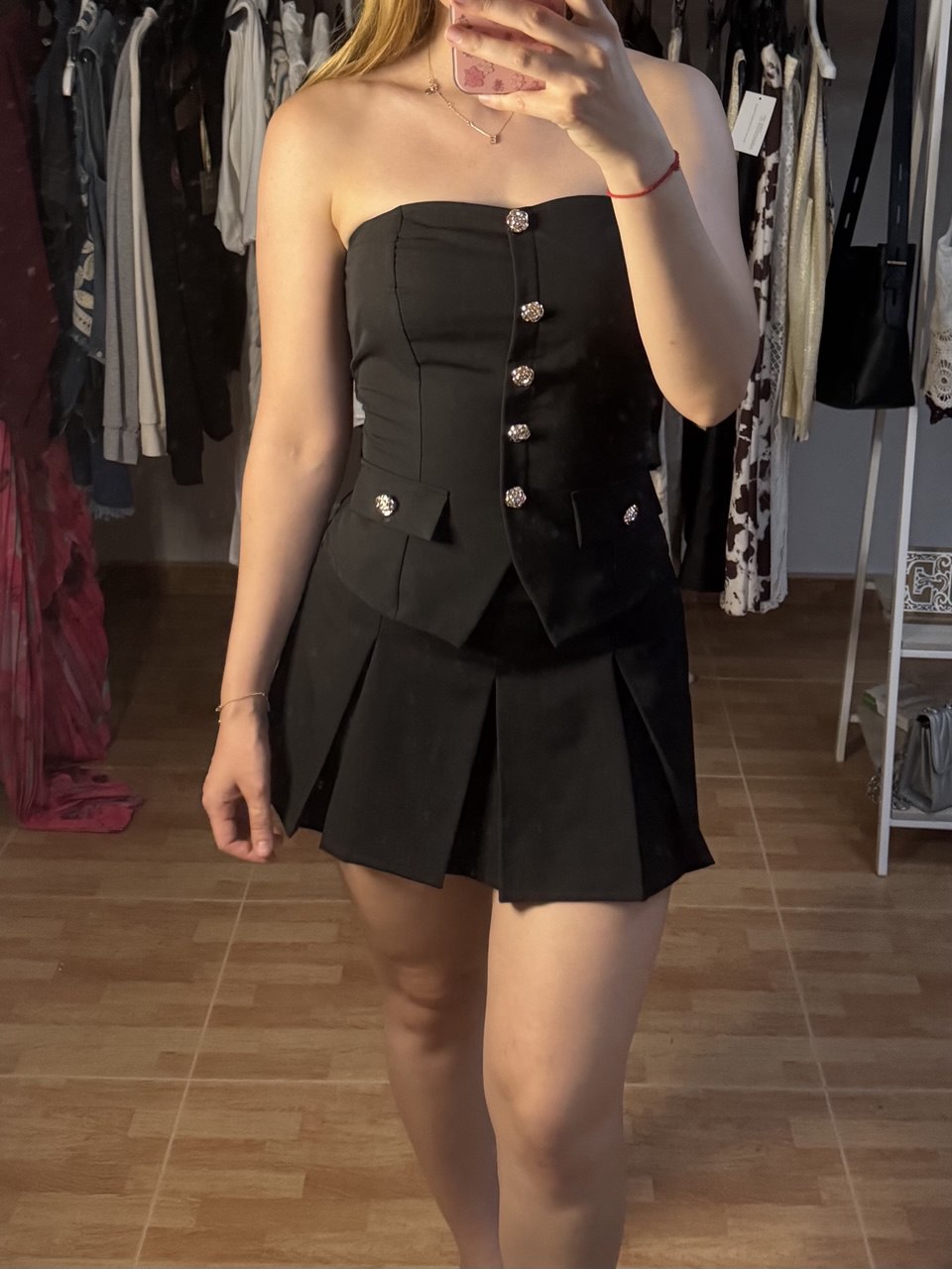 Falda de corte estructurado con diseño de tablas que aporta movimiento y sofisticación. Confeccionada en tela sastre de tono gris, es perfecta para looks elegantes y versátiles. Su estilo clásico y atemporal la convierte en una prenda ideal para combinar con blusas, corsets o blazers, adaptándose tanto a outfits formales como a propuestas más modernas y atrevidas.