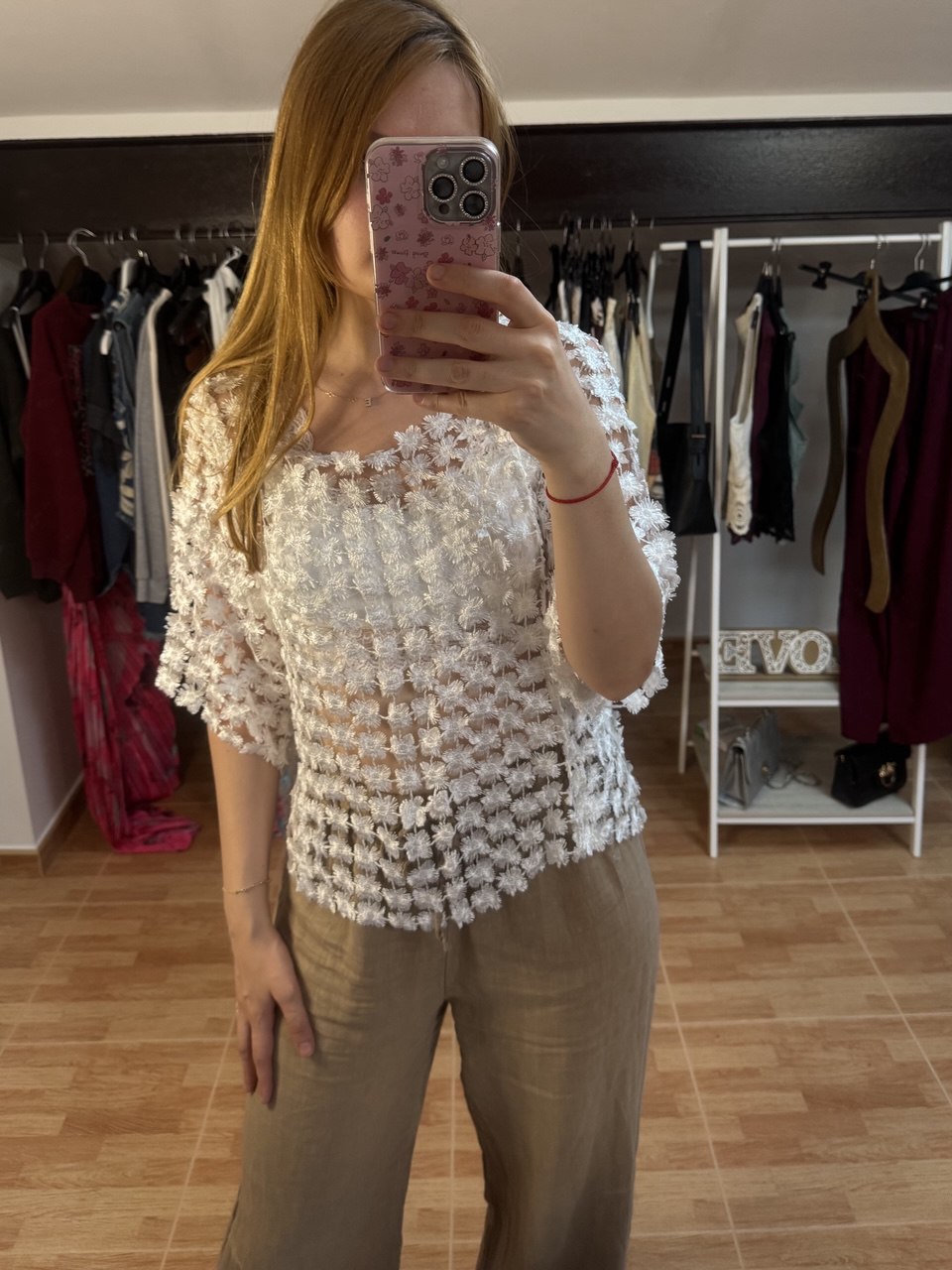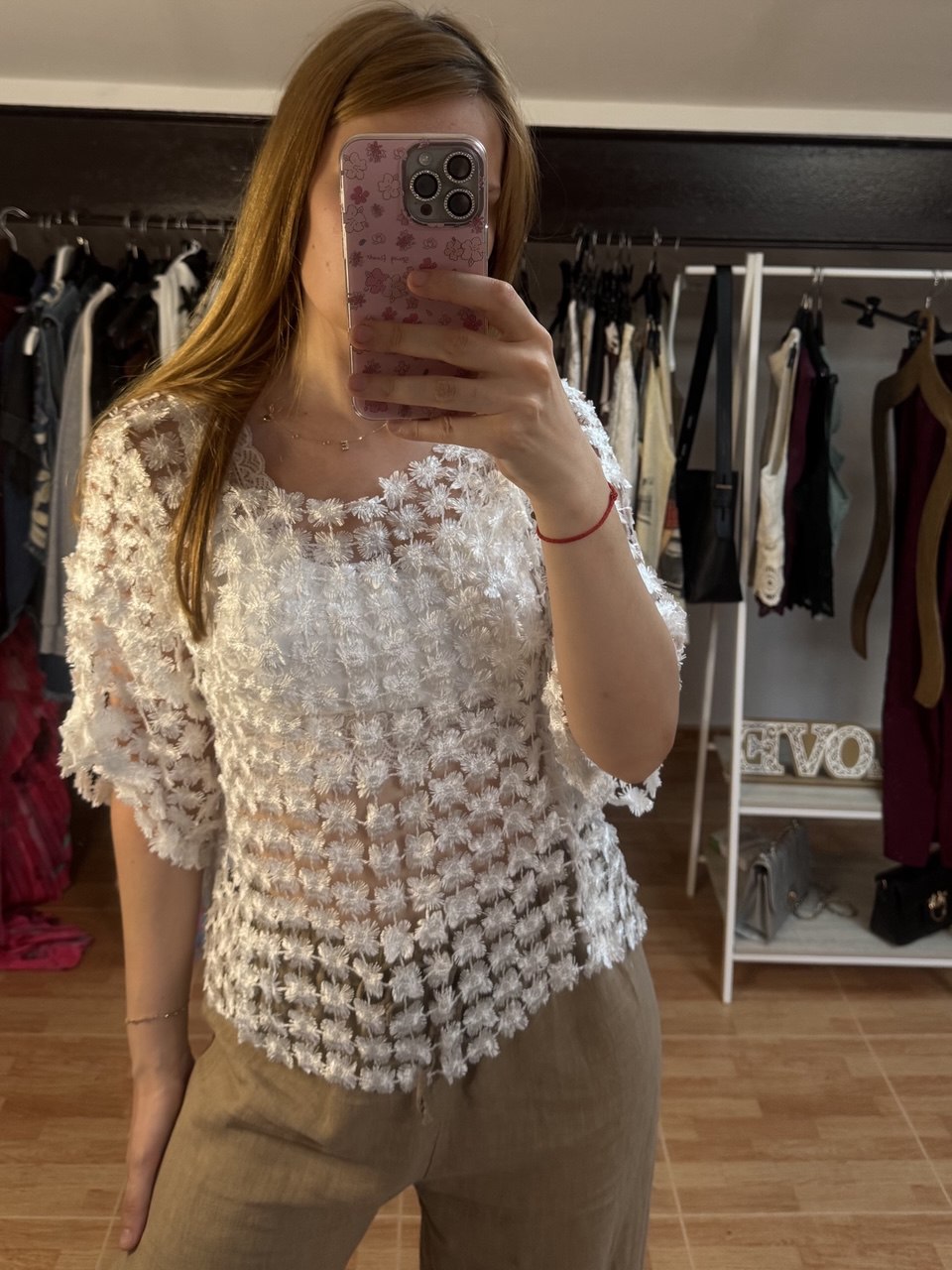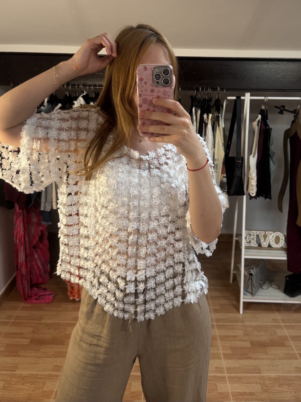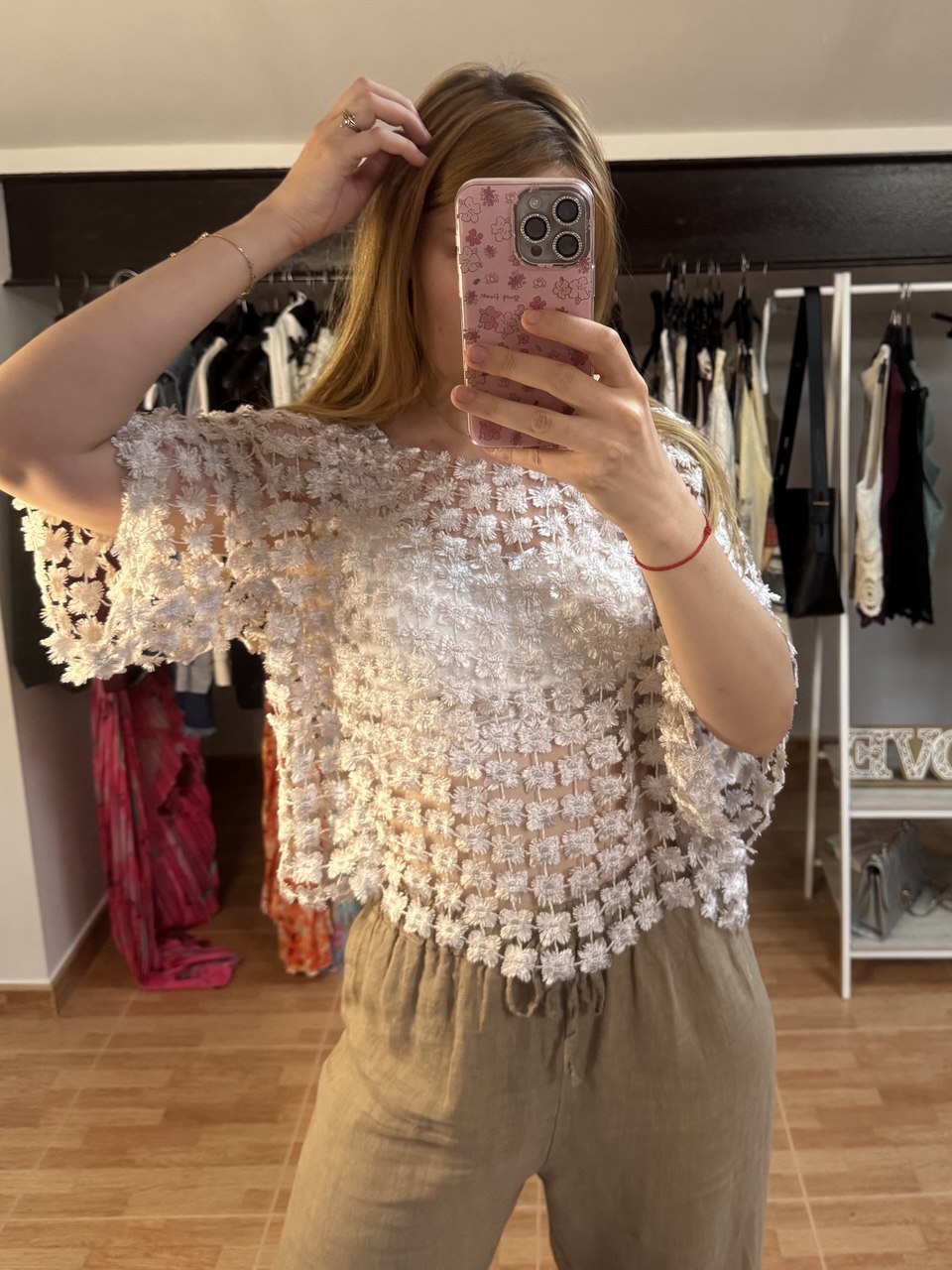 Femenina, delicada y con un aire bohemio, la blusa Isabela es sinónimo de elegancia sutil. Su malla ligera con bordados florales en relieve crea un efecto etéreo que realza cualquier look. Su corte amplio y cómodo la hace perfecta para diferentes tipos de cuerpo, adaptándose desde la talla S hasta la XL.
