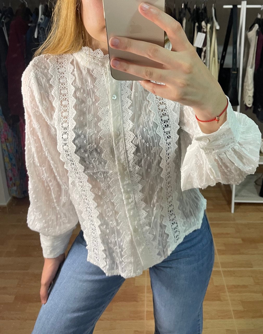 Camisa blanca bordada con hilos dorados