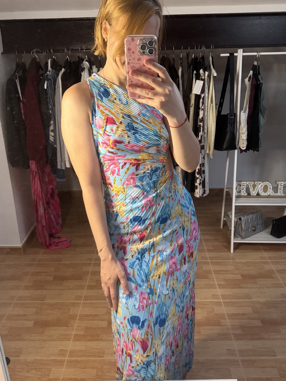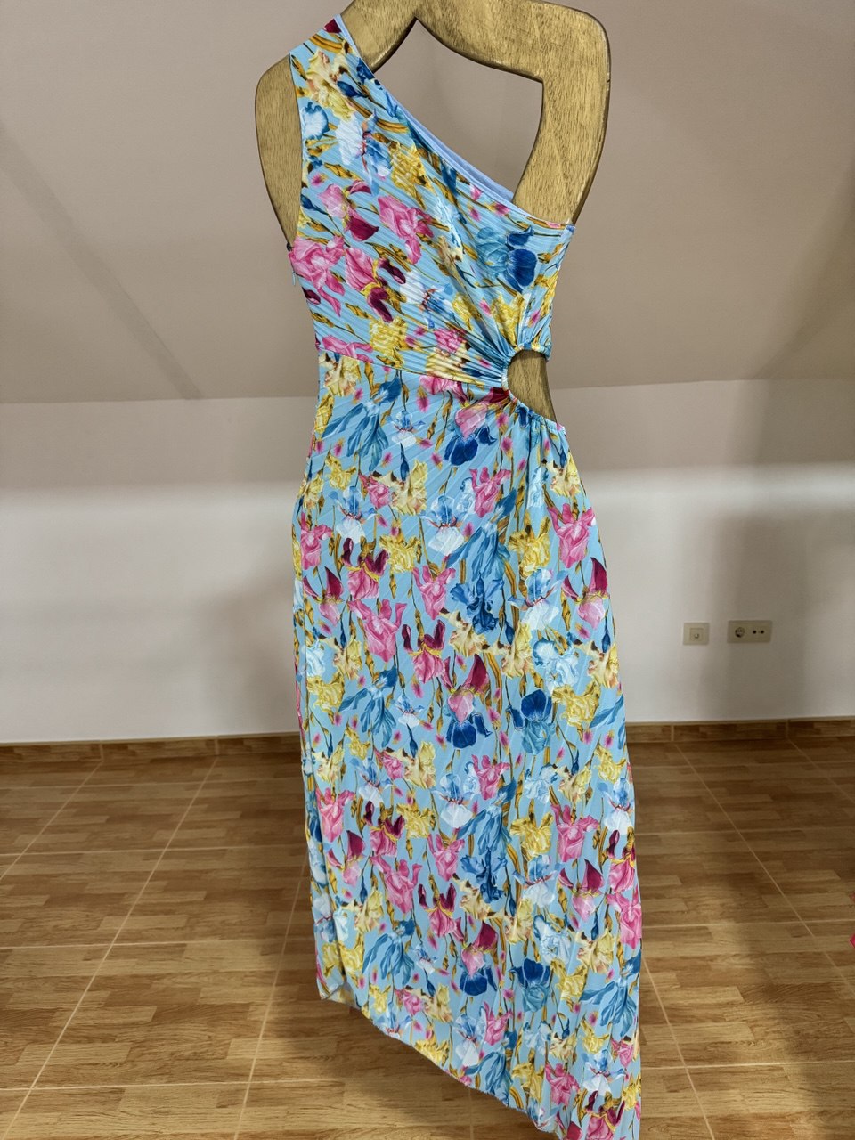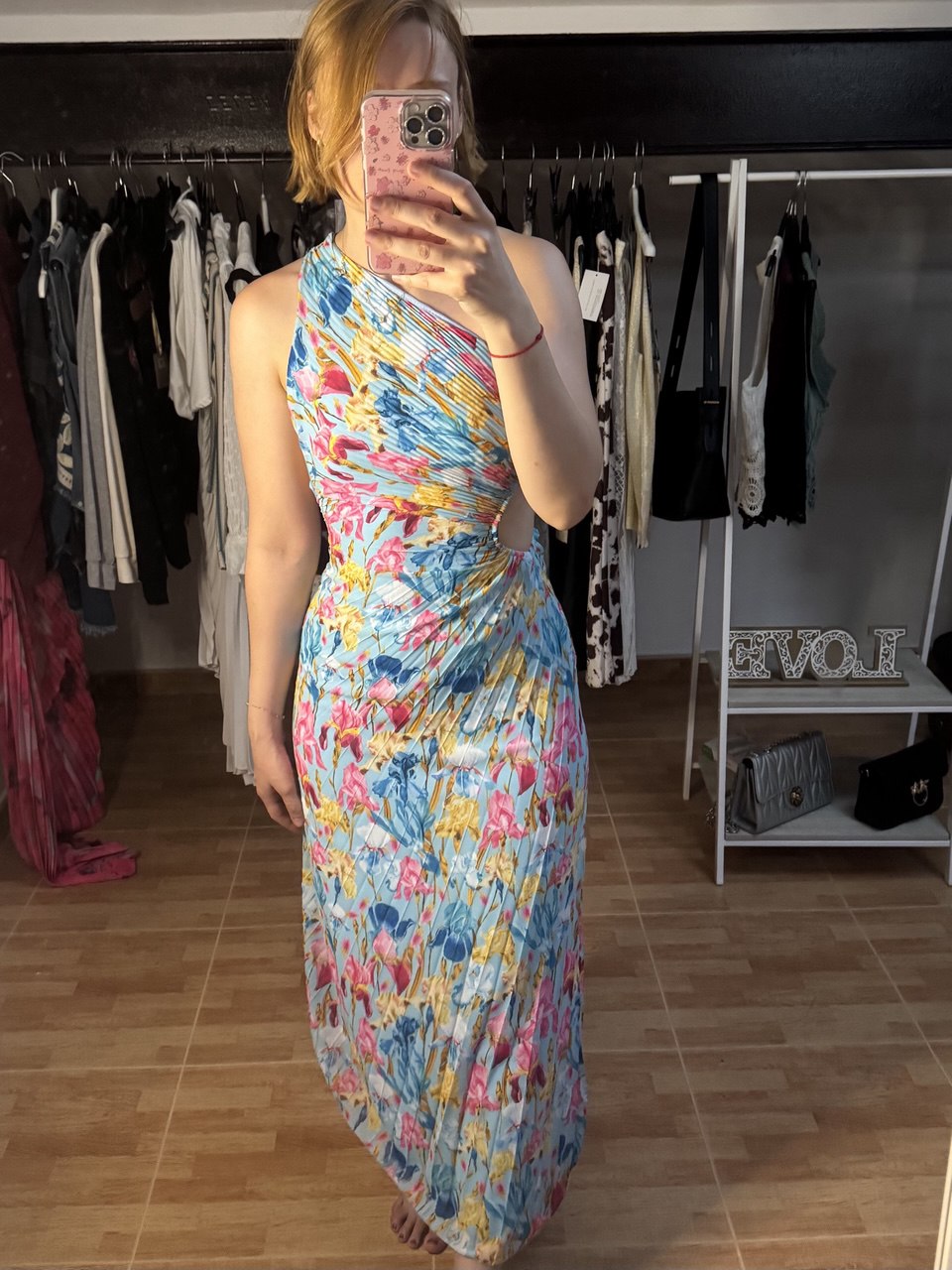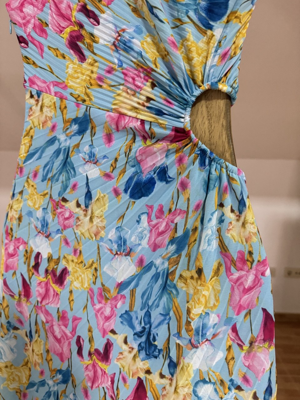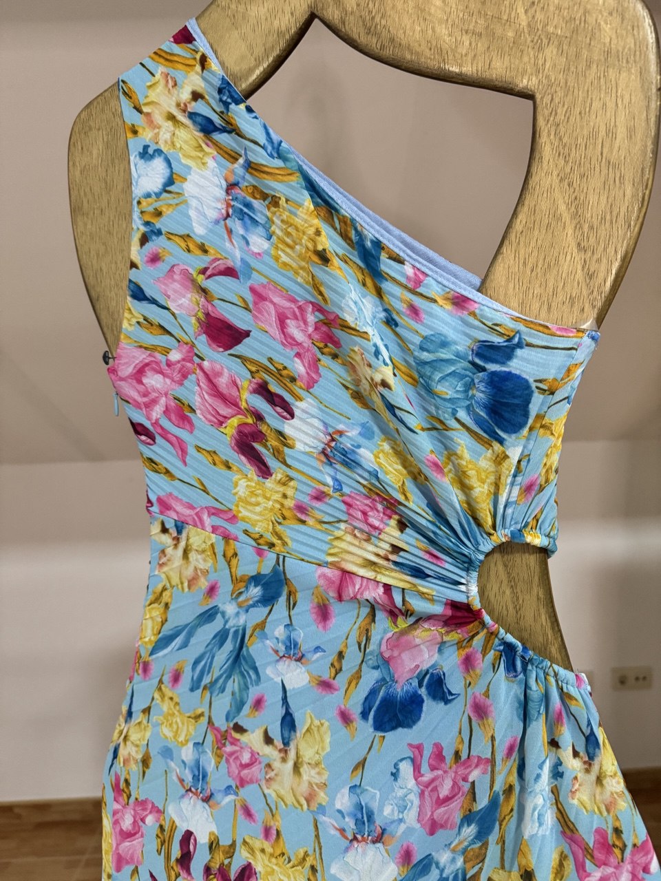Romántico y vibrante, el vestido Lucy es la opción perfecta para destacar en cualquier ocasión. Su diseño asimétrico de un solo hombro y el detalle lateral fruncido con abertura le aportan un toque fresco y moderno. Con estampado floral multicolor sobre fondo azul y cremallera lateral para un ajuste perfecto, este vestido combina comodidad y estilo en una sola prenda.